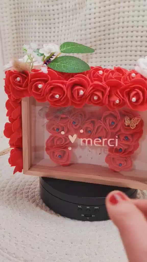 Découvrez ce cadre élégant et raffiné, entièrement recouvert de roses minutieusement disposées à la main.