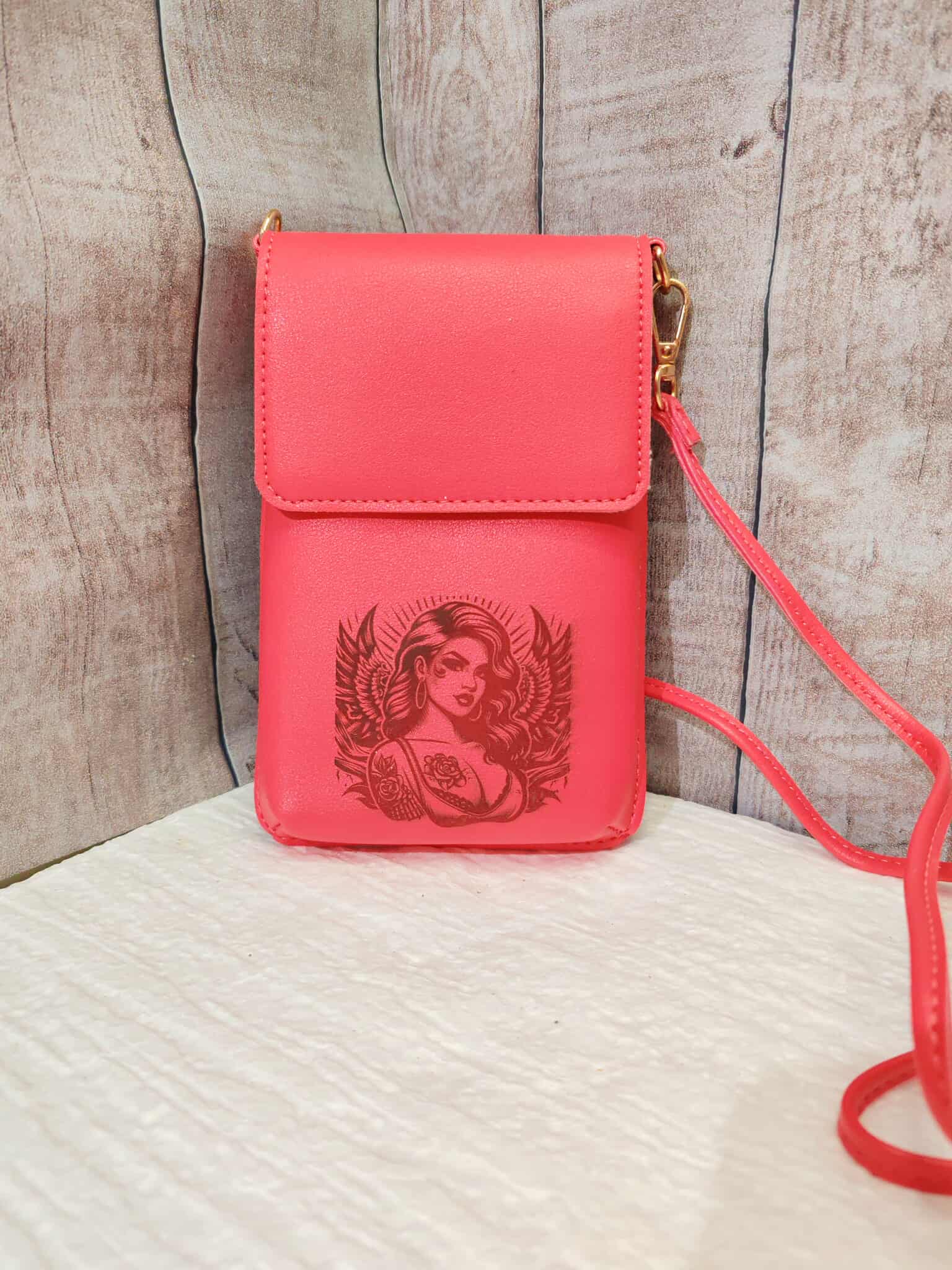 Détails du produit : Réalisé à la main avec des finitions de qualité Joli coloris rose vif, élégant et original Gravure stylisée, exclusive et durable Porte-carte intégré à l’arrière, pratique pour vos indispensables Bandoulière fine et confortable, idéale pour un usage quotidien Ce sac est parfait pour accompagner vos tenues avec une touche de caractère et d’originalité. Un accessoire à la fois pratique, féminin et plein de charme
