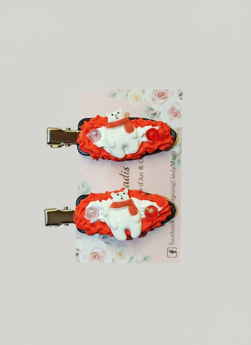 Pinces à cheveux kawaii gourmandes de Noël  ✨ Ajoutez une touche sucrée et originale à vos coiffures avec ces adorables pinces à cheveux faites main ! Réalisées en crème-colle décorative, elles imitent à merveille de délicieuses pâtisseries et confiseries, dans un style kawaii irrésistible 🍓🍫🍩🌸 Caractéristiques : Fait main avec soin et créativité Style kawaii et gourmand (effet crème et petits décors sucrés) Accessoire original et unique, parfait pour personnaliser vos tenues Idéal pour les passionnées de mode kawaii, cosplay, ou simplement pour ajouter une note fun à votre look 💖 Parfait comme cadeau ou pour se faire plaisir ! 📍 Disponibles dès maintenant,